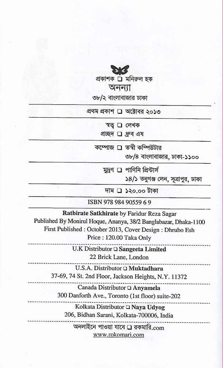 Ratbirate Shatkhirate is a book written by Faridur Reja Shagor and published by Anannya.