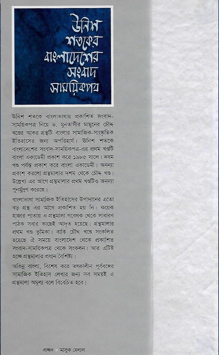 উনিশ শতকে বাংলাদেশের সংবাদ-সাময়িকপত্র-১৪ বইটি লিখেছেন মুনতাসীর মামুন। প্রকাশক অনন্যা। পৃষ্ঠার এই বইটির মূল্য 200 টাকা।