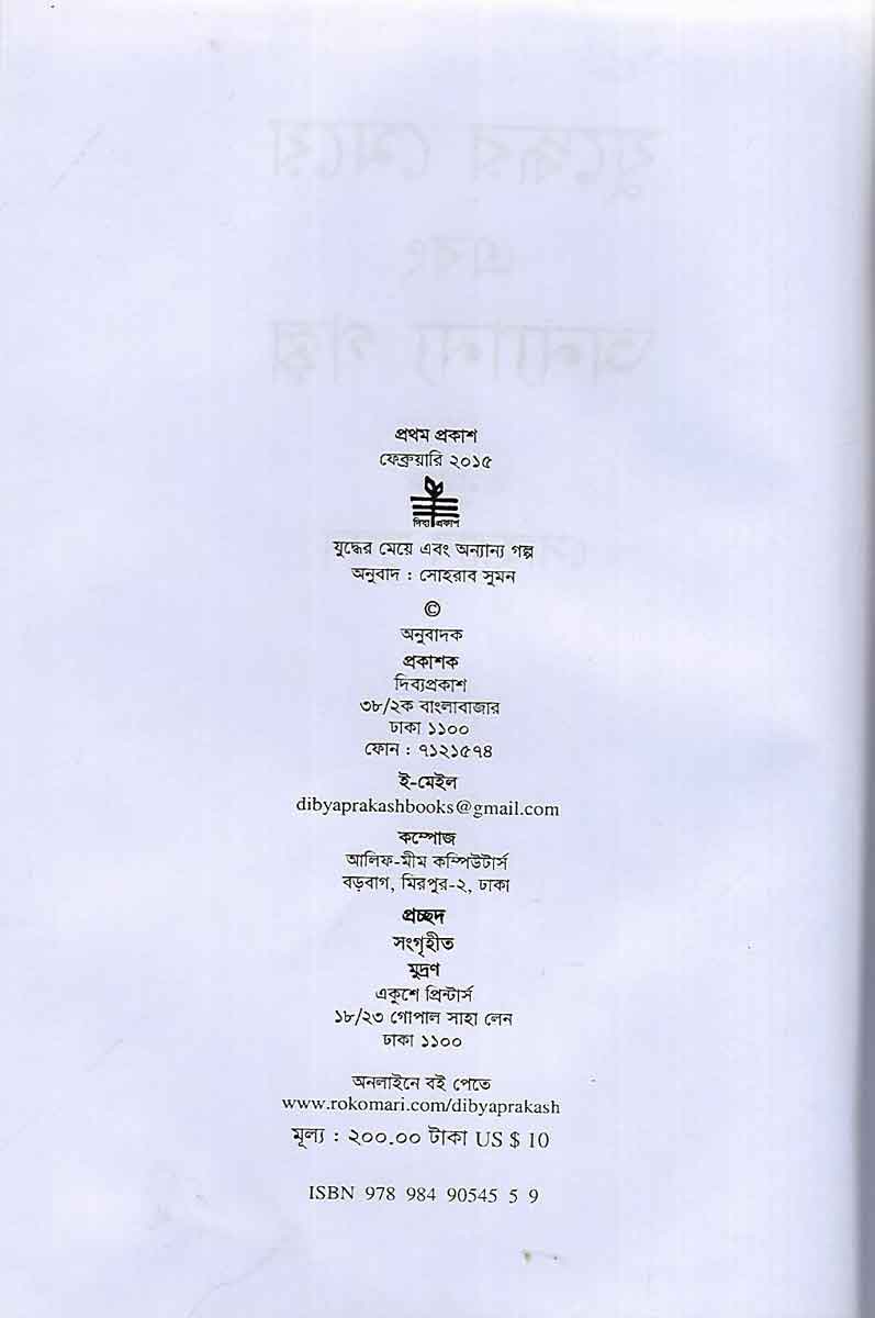 যুদ্ধের মেয়ে বইটি লিখেছেন সোহরাব সুমন। প্রকাশক দিব্যপ্রকাশ। 127 পৃষ্ঠার এই বইটির মূল্য 200 টাকা।