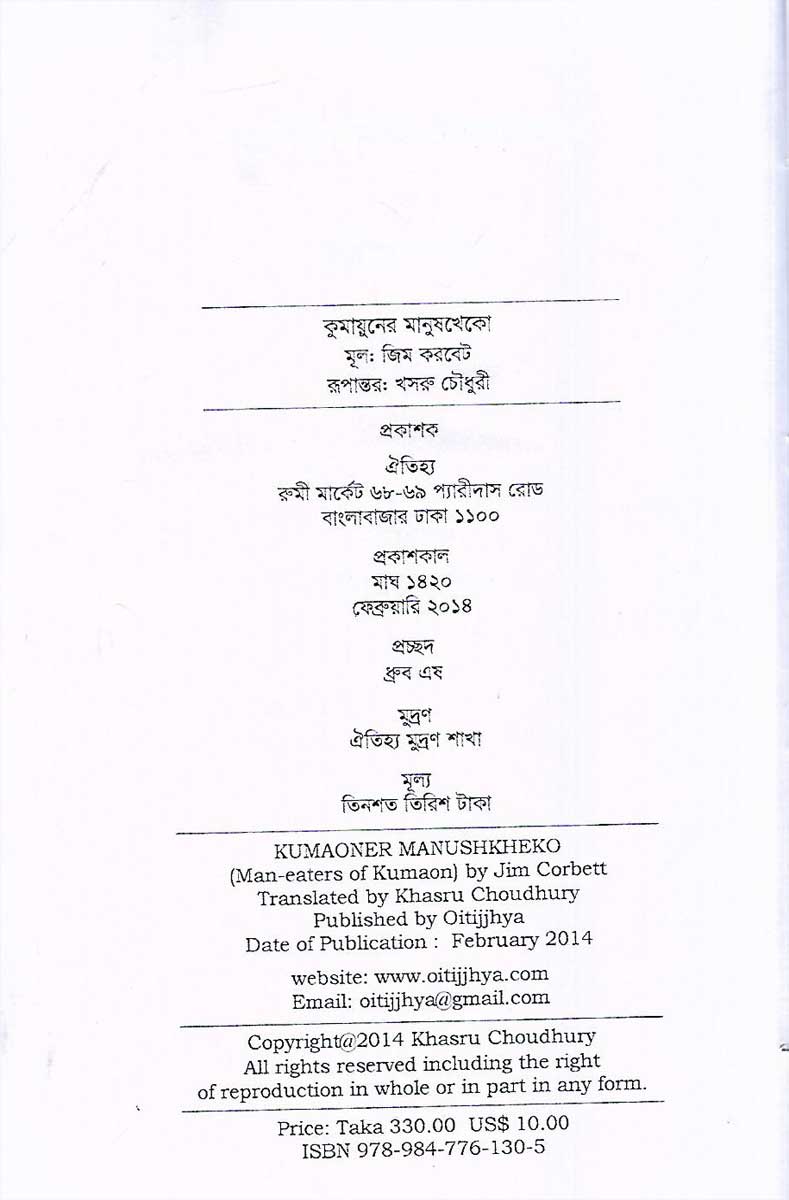 Kumaoner Manushkheko [OITJ] is a book written by Jim Corbett and published by Oitijjhya.