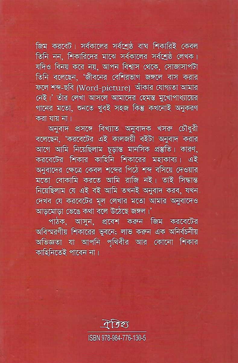কুমায়ুনের মানুষখেকো বইটি লিখেছেন জিম করবেট। প্রকাশক ঐতিহ্য। 262 পৃষ্ঠার এই বইটির মূল্য 330 টাকা।