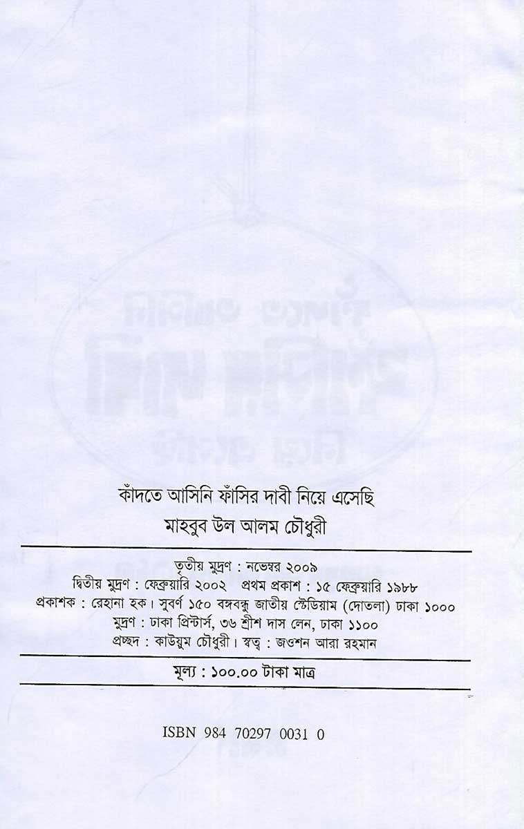 Kadte Ashini Fashir Dabi Niye Eshechi [subn] is a book written by Mahbubul Alam and published by Subarna.