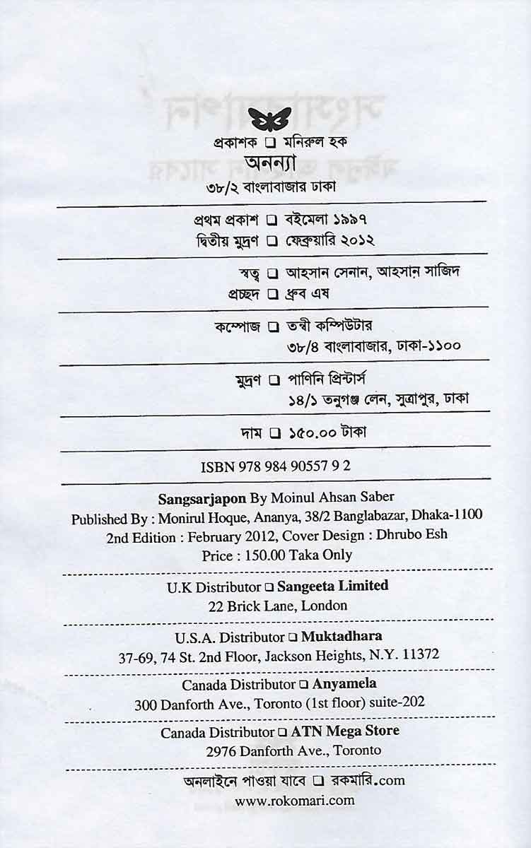 Shongsharjapon is a book written by Moinul Ahsan Saber and published by Anannya.