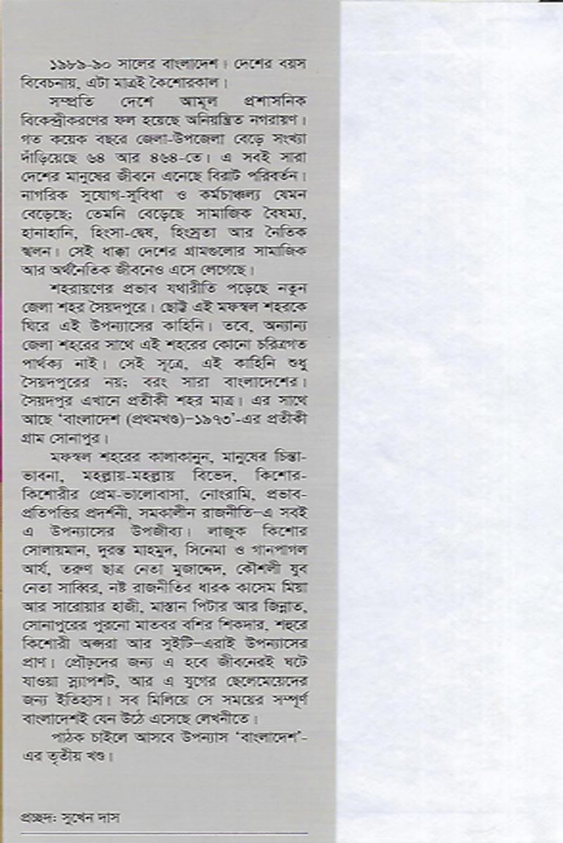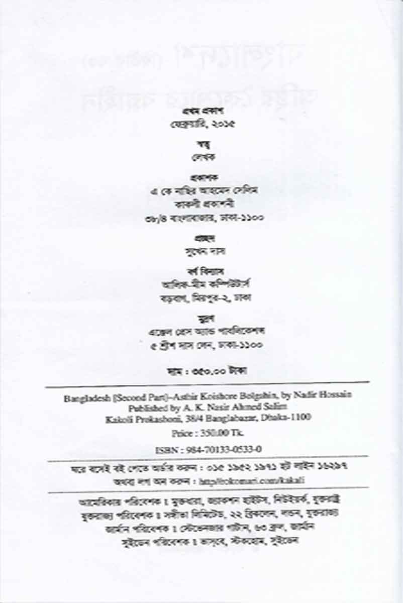 Bangladesh Osthir Koishore Bolgahin (2nd Part) is a book written by Nadir Hossain and published by Kakoli Prokashoni.