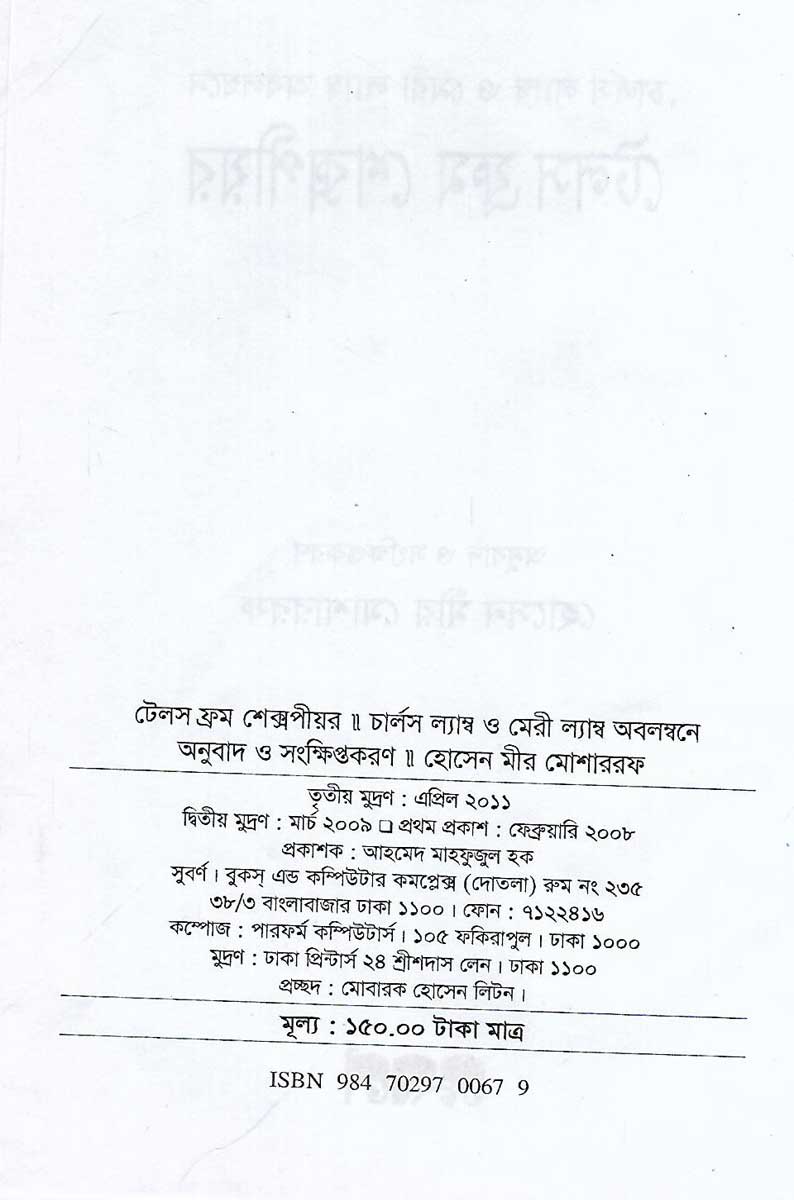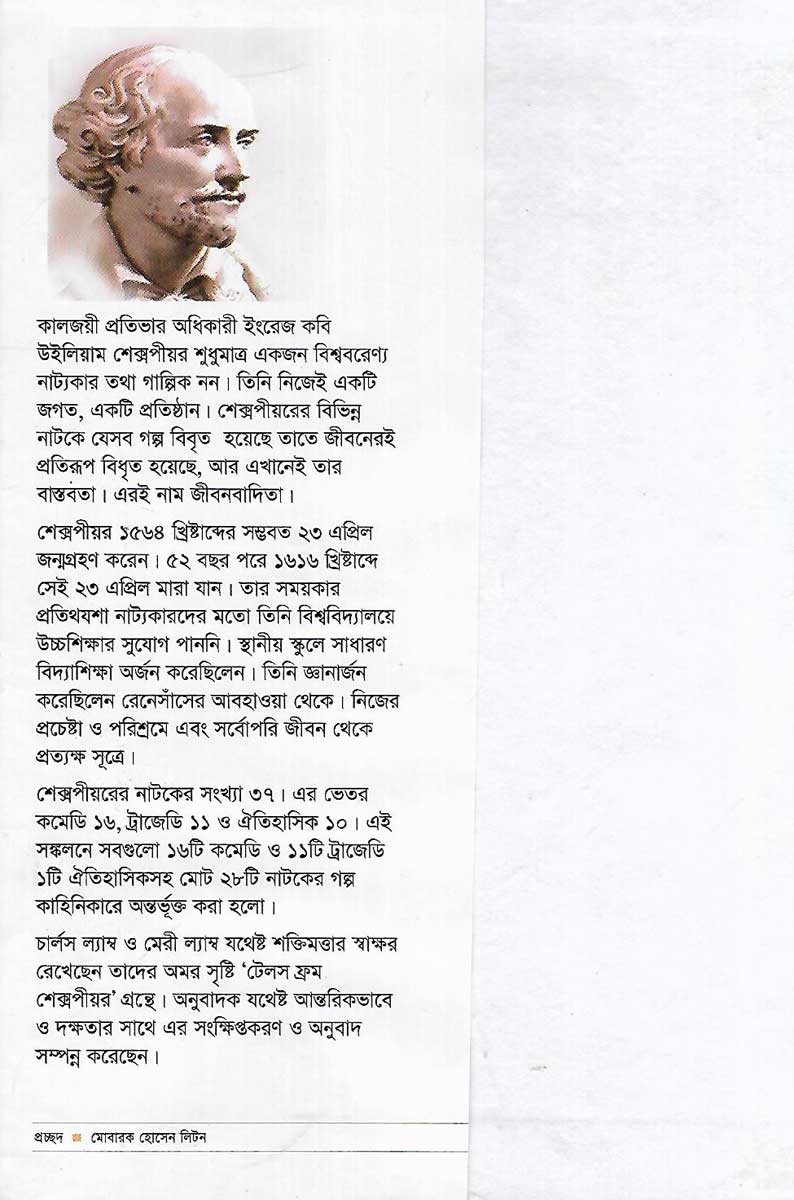 Tales From Shakespear is a book written by Hosen Meer Mosharaf and published by Subarna.