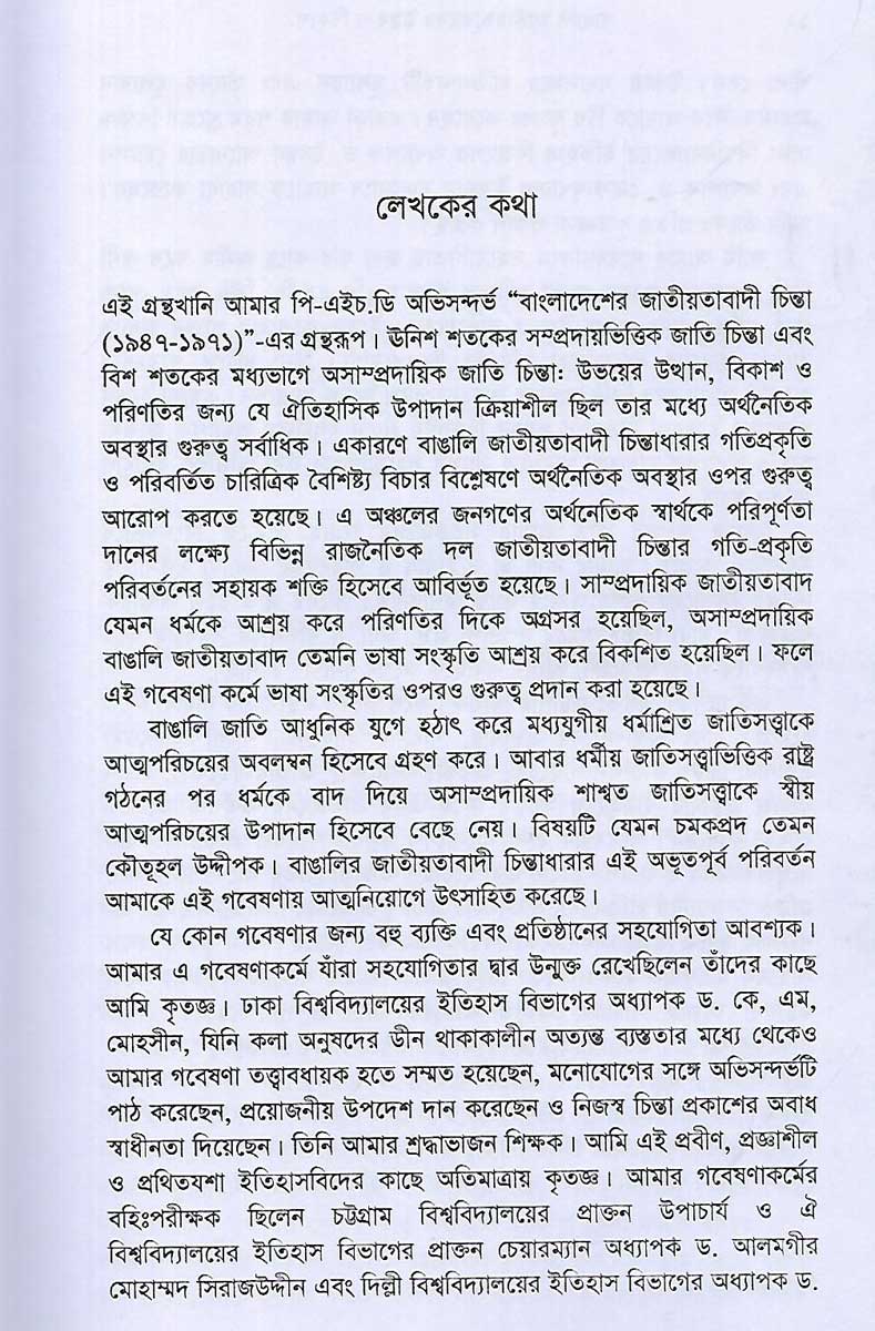 Bangali Jatiotabader Udvob O Bikash is a book written by Dr. Nigar Chowdhury and published by Subarna.