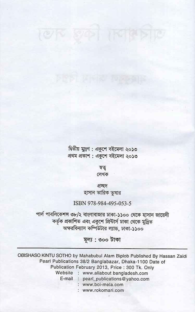 Obisshassho Kintu Shotto is a book written by Mahbubul Alam Biplab and published by Pearl Publications.