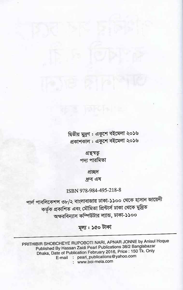 Prithibir Sobocheye Rupobiti Nari, Aponar Jonne is a book written by Anisul Hoque and published by Pearl Publications.