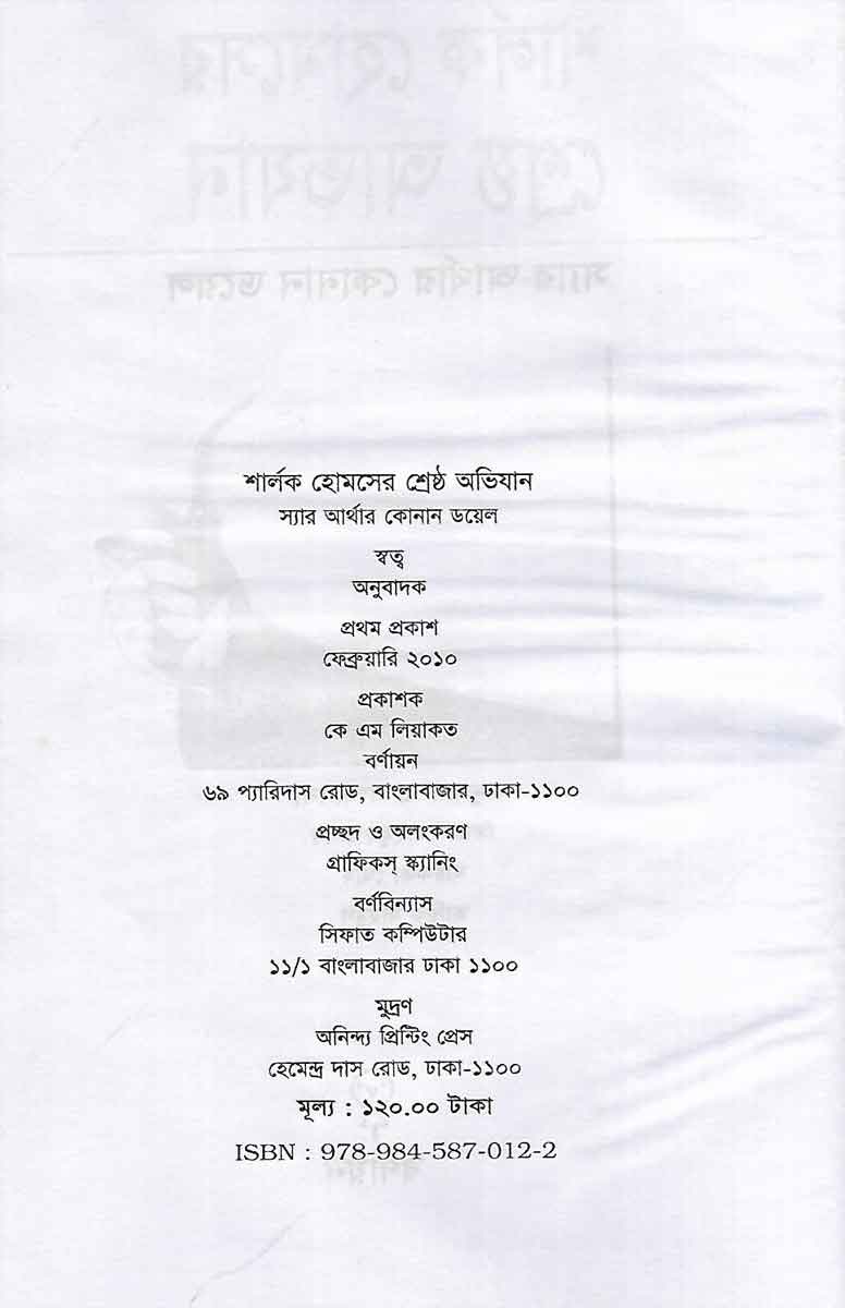 Sherlock Holmeser Shrestho Avijan is a book written by Sir Arthur Conan Dail and published by Bornayon.