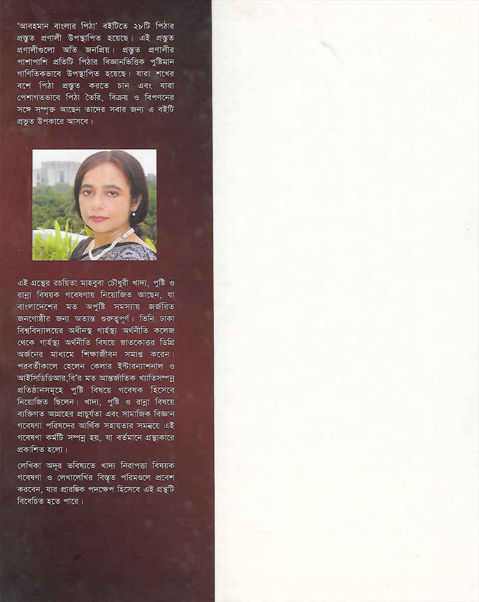 আবহমান বাংলার পিঠা বইটি লিখেছেন মাহবুবা চৌধুরী। প্রকাশক চন্দ্রাবতী একাডেমি। পৃষ্ঠার এই বইটির মূল্য 1000 টাকা।