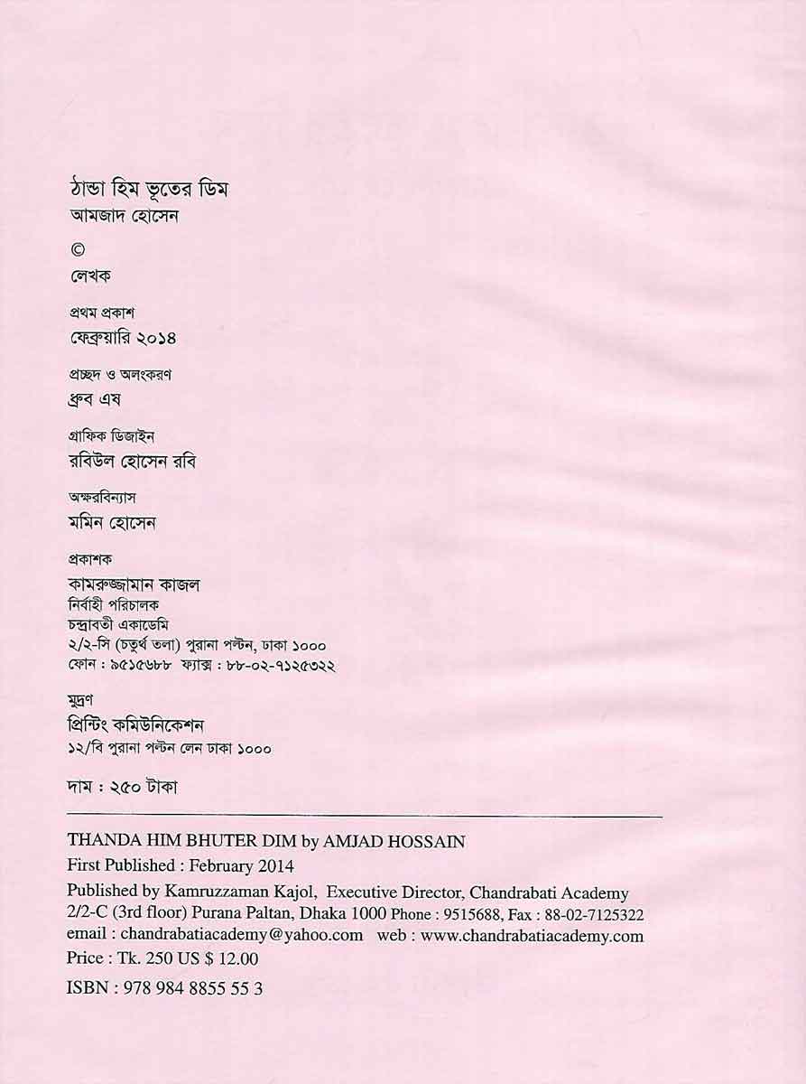 ঠান্ডা হিম ভূতের ডিম বইটি লিখেছেন আমজাদ হোসেন। প্রকাশক চন্দ্রাবতী একাডেমি