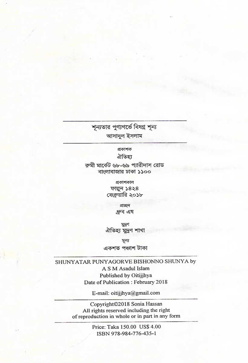 Shunyatar Punyagorve Bishonno Shonya is a book written by Asadul Islam and published by Oitijjhya.