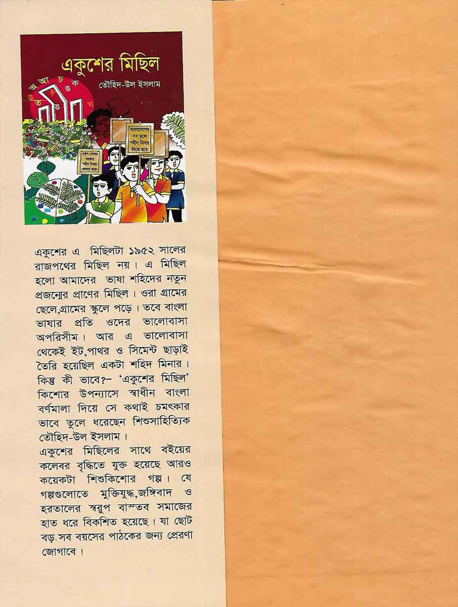 একুশের মিছিল বইটি লিখেছেন তৌহিদ-উল ইসলাম। প্রকাশক আদিগন্ত প্রকাশন। পৃষ্ঠার এই বইটির মূল্য 200 টাকা।