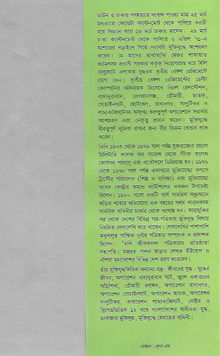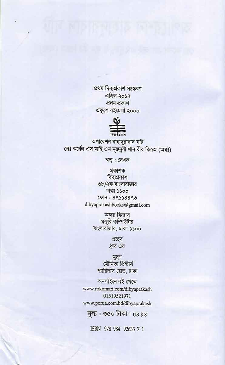Operation Bahadurabad Ghat is a book written by Le. Col. S I M Nurunnabi Khan Bir Bikram (Ab:) and published by Dibboprokash.