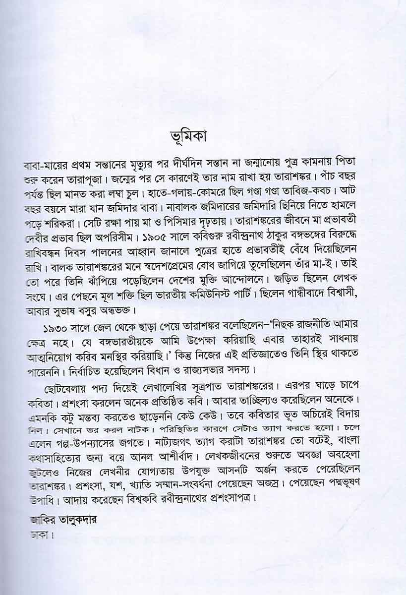 Tarashankar Bandyopadhyay is a book written by Jakir Talukder and published by Katha Prokash.