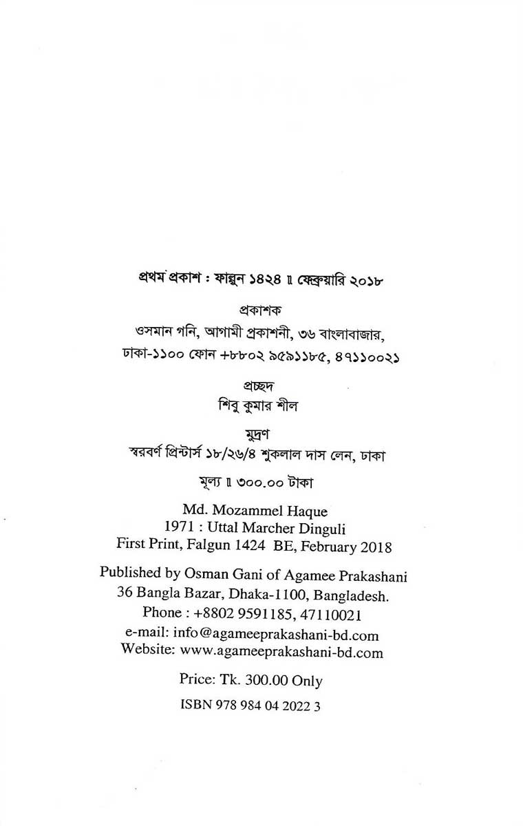 1971 Uttal Marcher Dingulee is a book written by Mozammel Haque and published by Agamee Prakashani.
