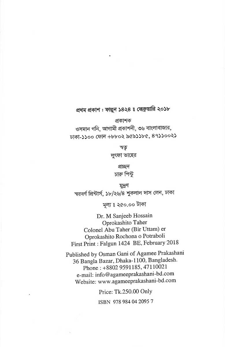 Aprokashito Taher : Aprokashito Rachona O Patraboli is a book written by Dr. M Sanjib Hossain and published by Agamee Prakashani.