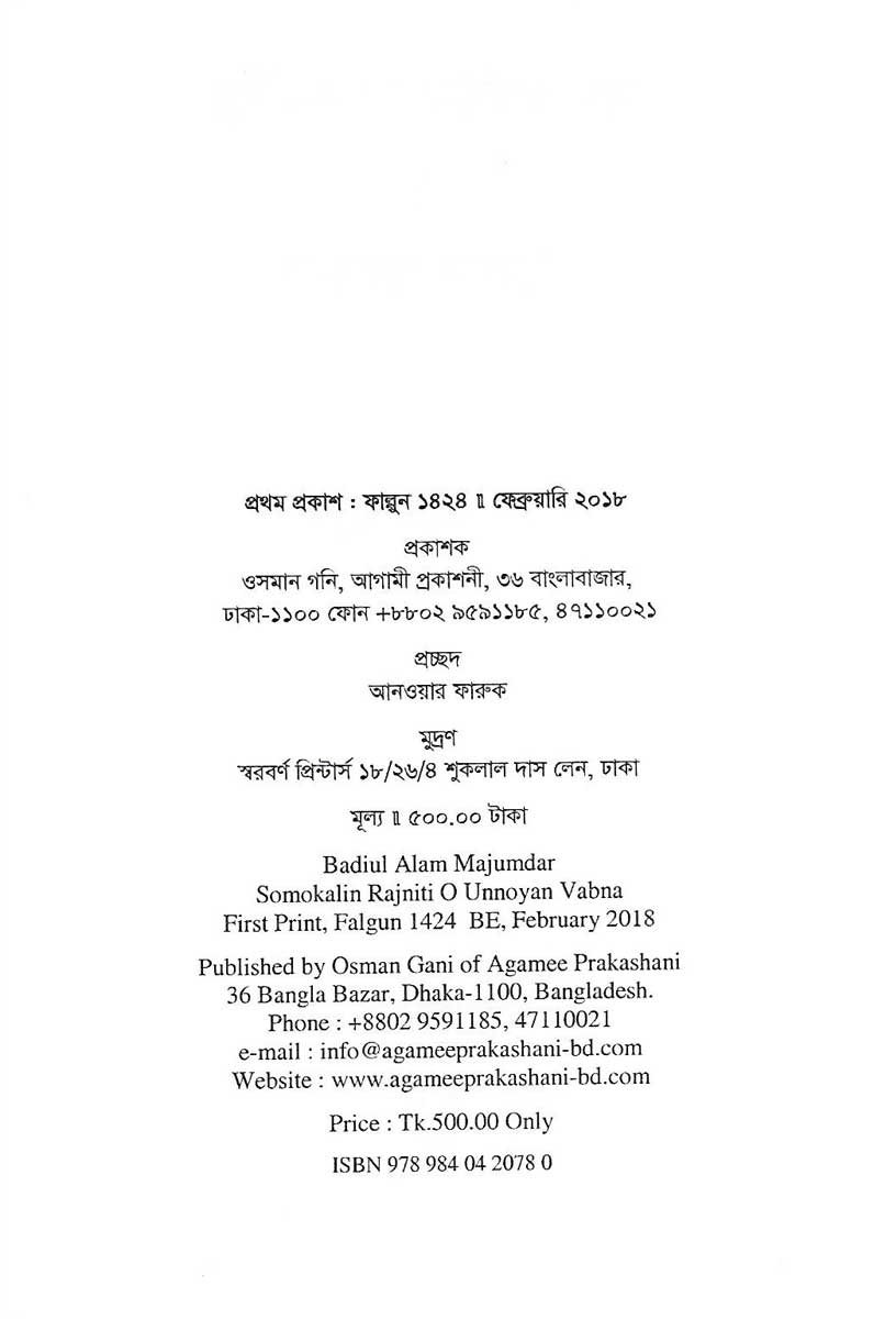 Somokalin Rajniti O Unnoyan Vabna is a book written by Dr. Badiul Alam Majumder and published by Agamee Prakashani.