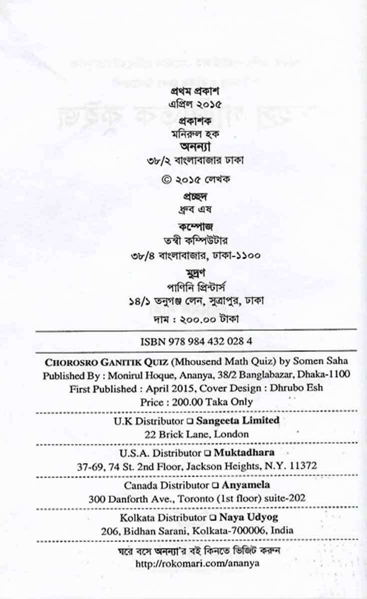 Shohosro Ganitik Quiz is a book written by Soumen Saha and published by Anannya.