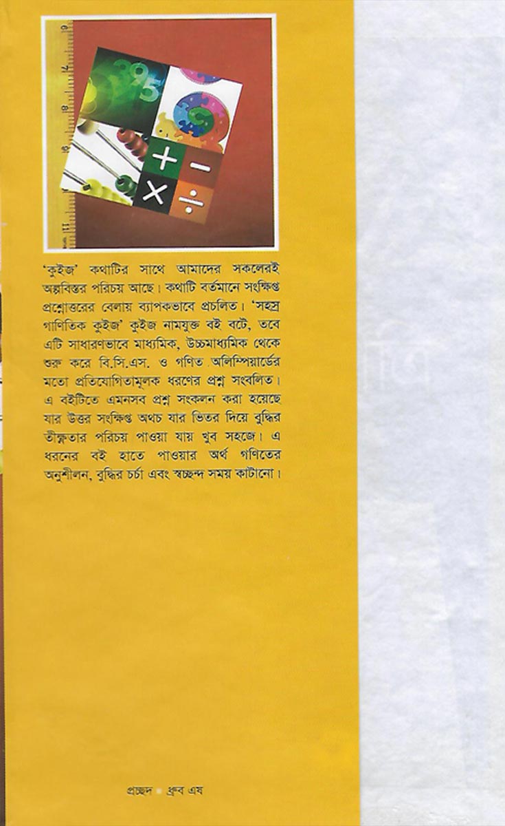 সহস্র গাণিতিক কুইজ বইটি লিখেছেন সৌমেন সাহা। প্রকাশক অনন্যা। 124 পৃষ্ঠার এই বইটির মূল্য 200 টাকা।