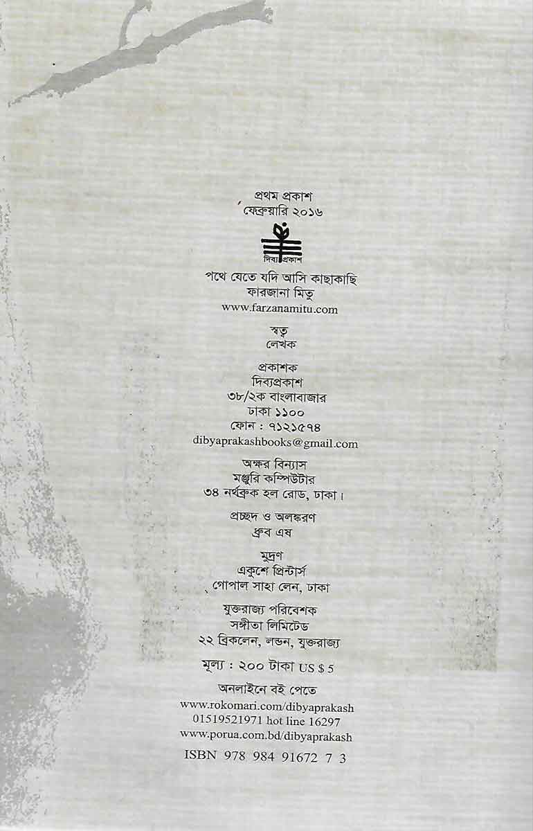 Pothe Jete Jodi Ashi Kachakachi is a book written by Farzana Mitu and published by Dibboprokash.