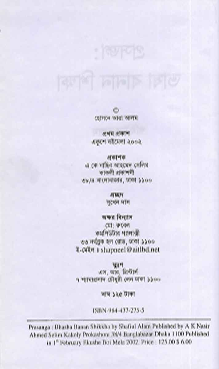 Proshongo: Bhasha Banan Shikkha is a book written by Shafiul Alam and published by Kakoli Prokashoni.