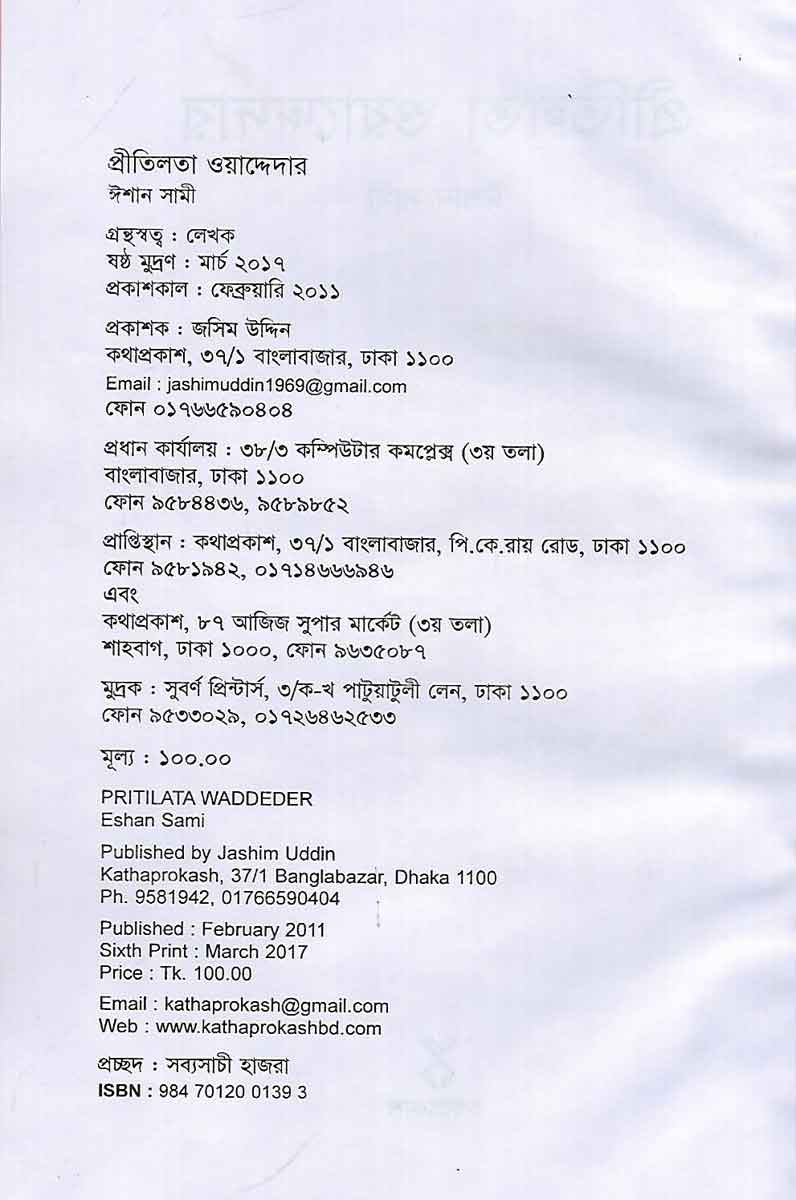 Pritilata Waddedar is a book written by Ishan Sami and published by Katha Prokash.