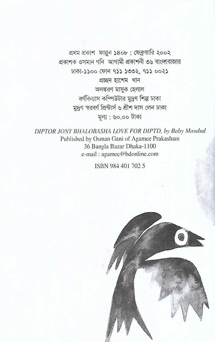 Diptor Jonne Valobasha is a book written by Baby Moudud and published by Agamee Prakashani.