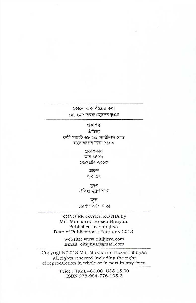 Kono Ek Gayer Kotha is a book written by Mosharraf Hossain Bhuiyan and published by Oitijjhya.