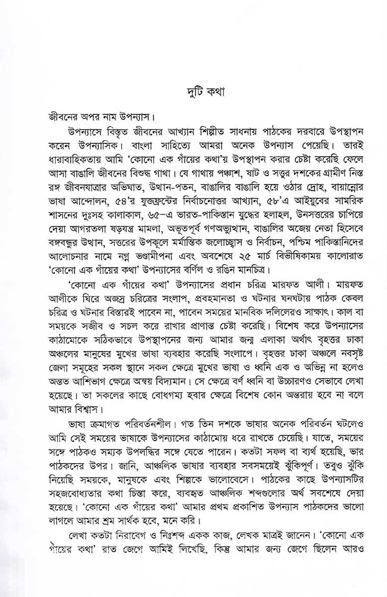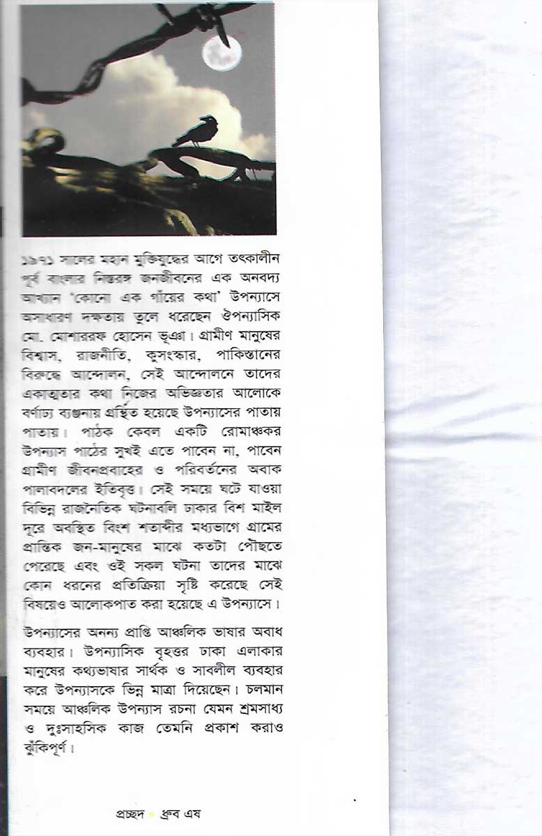 কোনো এক গাঁয়ের কথা বইটি লিখেছেন মোশাররফ হোসেন ভূঞা। প্রকাশক ঐতিহ্য। 260 পৃষ্ঠার এই বইটির মূল্য 480 টাকা।