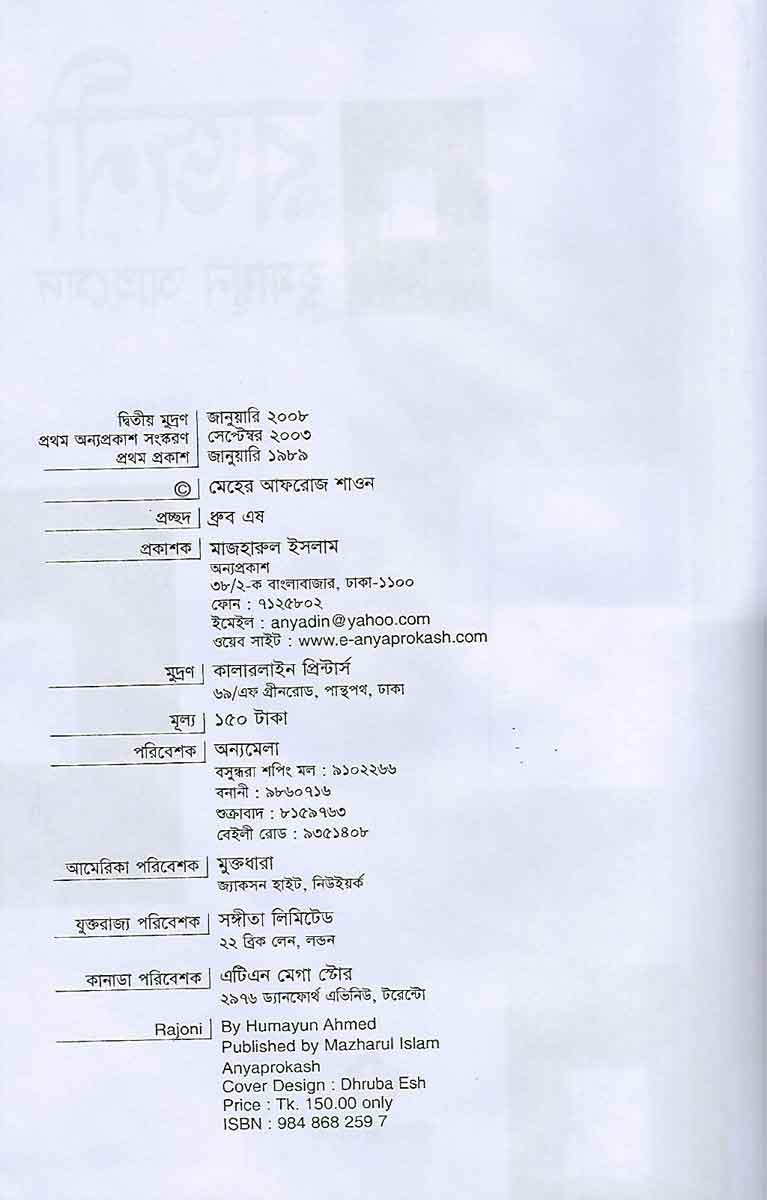 Rojoni is a book written by Humayun Ahmed and published by Anyaprokash.