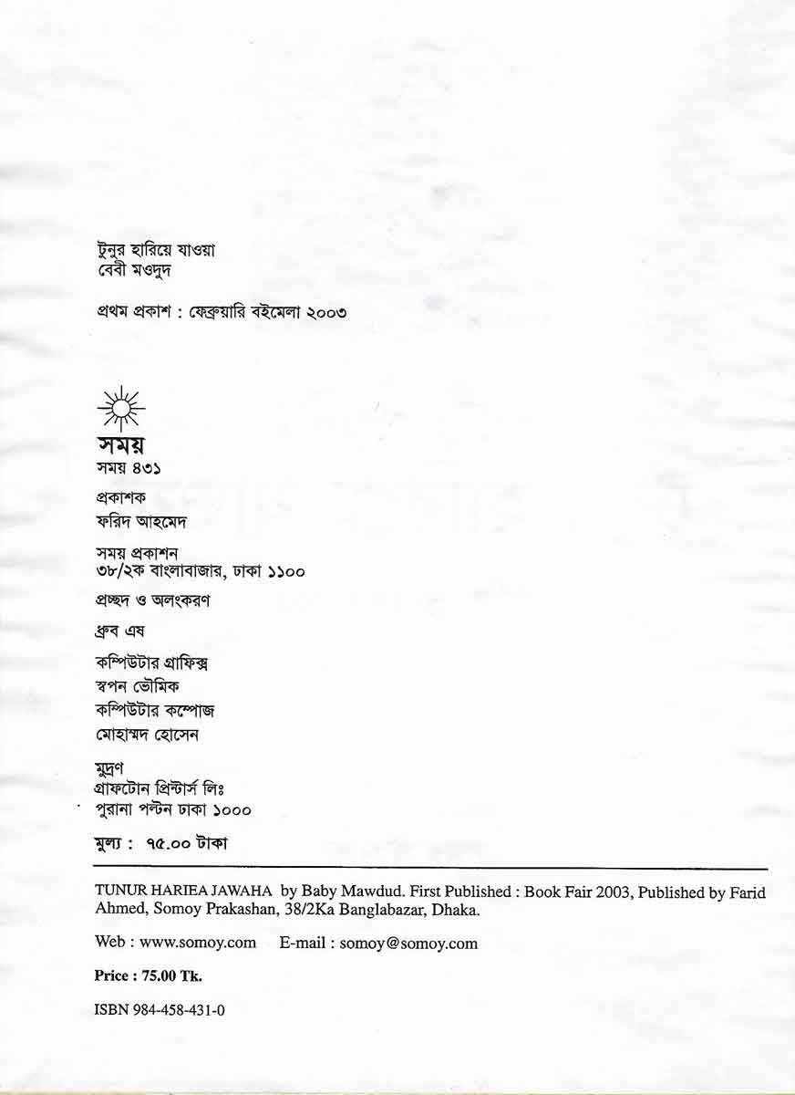 Tunut Haraye Jawa is a book written by Baby Moudud and published by Somoy Prokashon.
