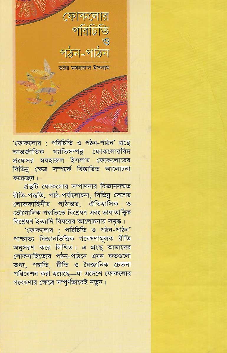 ফোকলোর পরিচিতি ও পঠন-পাঠন বইটি লিখেছেন ড. মযহারুল ইসলাম। প্রকাশক অবসর। 430 পৃষ্ঠার এই বইটির মূল্য 525 টাকা।